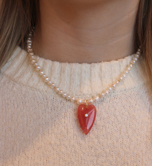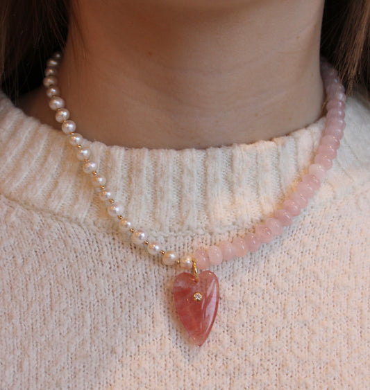 Rose Quartz + Pearl Heartstone