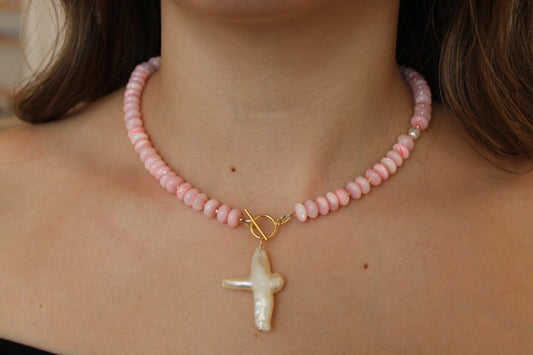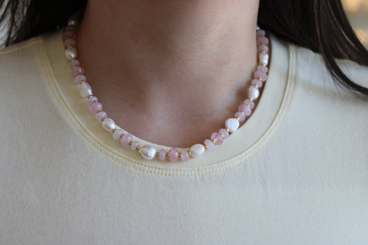 Rose Quartz + Freshwater Pearl Necklace