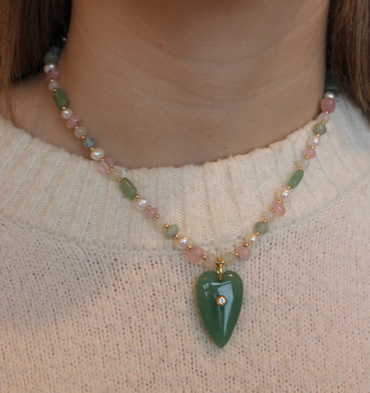 Pink Quartz + Green Aventurine Heartstone