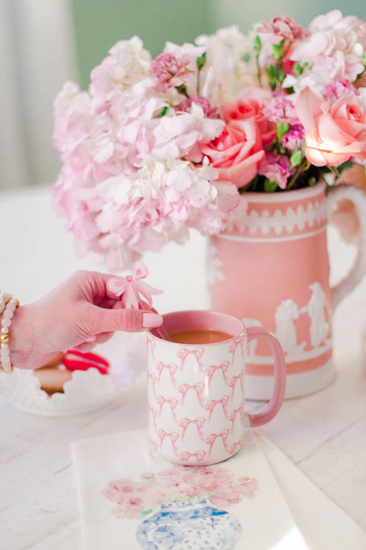 Pink Grandmillennial Bows 15oz Tall Watercolor Mug