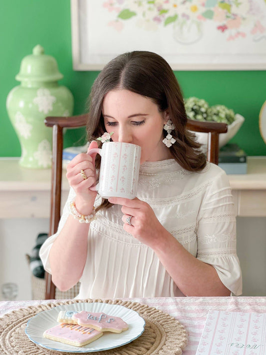 Pink Floral Stripe 15oz Tall Watercolor Mug