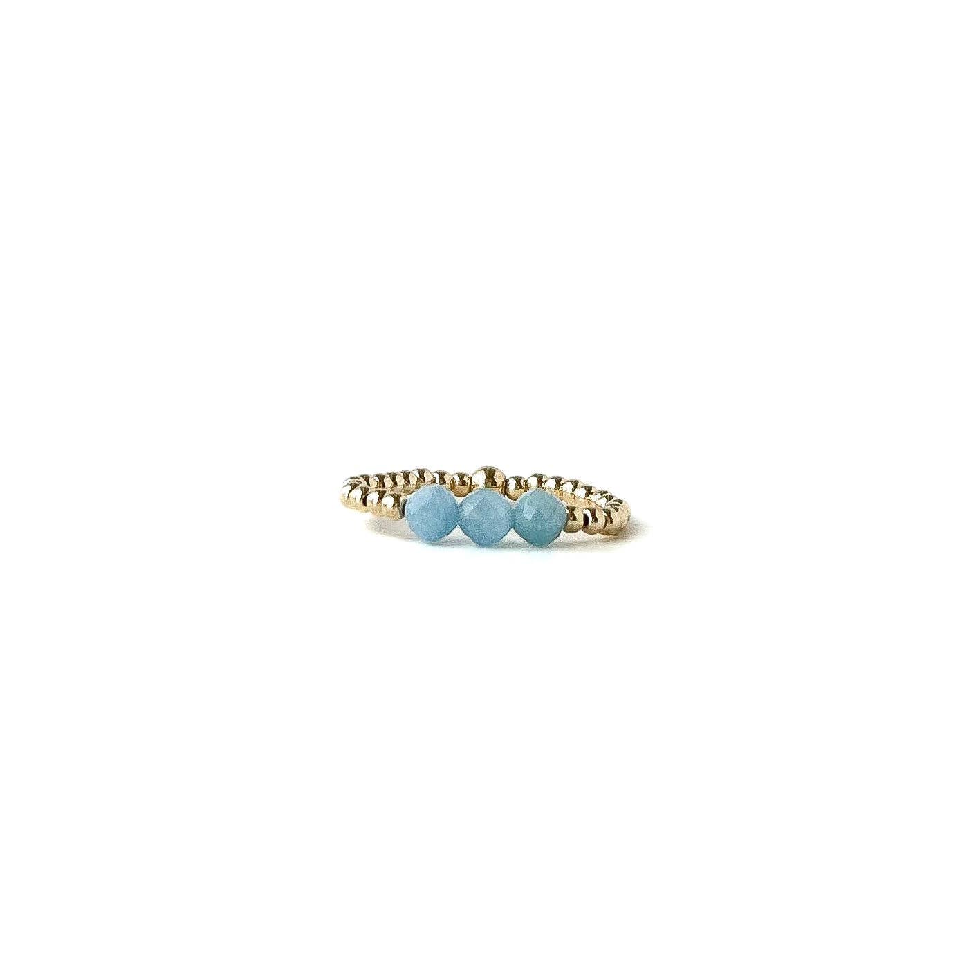 BIRTHSTONE COLLECTION • MARCH • The properties and meanings of each birthstone can be symbolic and healing- regardless of what month you were born in. • Aquamarine - brings tranquility and healing • Gold Filled Beads (2mm) • Premium Stretch Cord • Water & tarnish resistant APPROXIMATE sizing: • S/M- 5.5 - 7 • M/L- 7.5 - 9