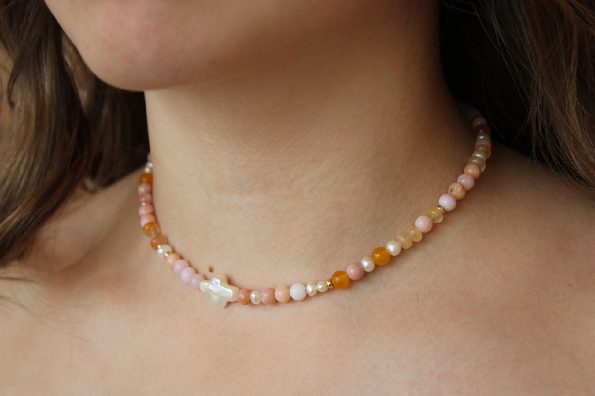 Opal & Pearl Cross Necklace