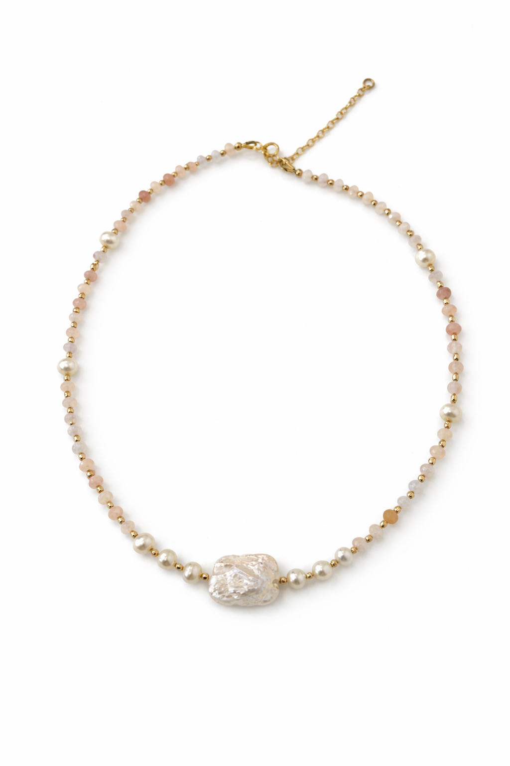 Natural pink aventurine faceted gemstones, freshwater pearls and 14k gold filled beads. 16”. Message us if you would like to order this in .925 sterling silver!