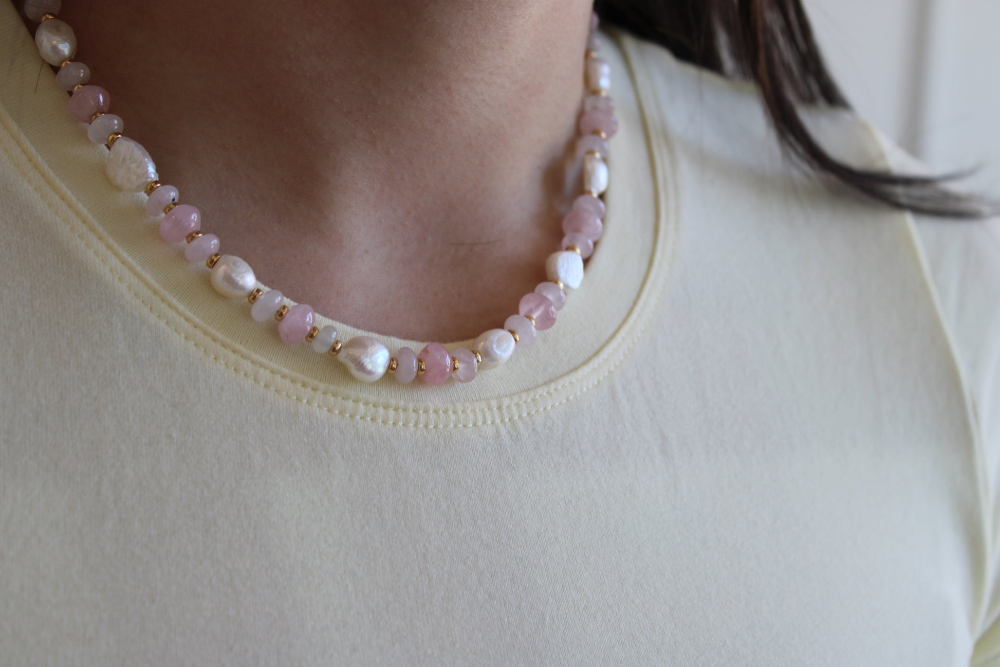Rose Quartz + Freshwater Pearl Necklace