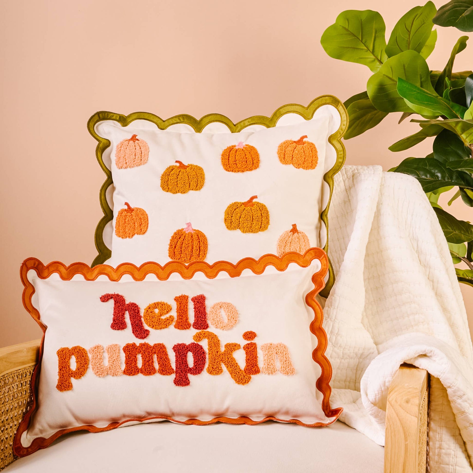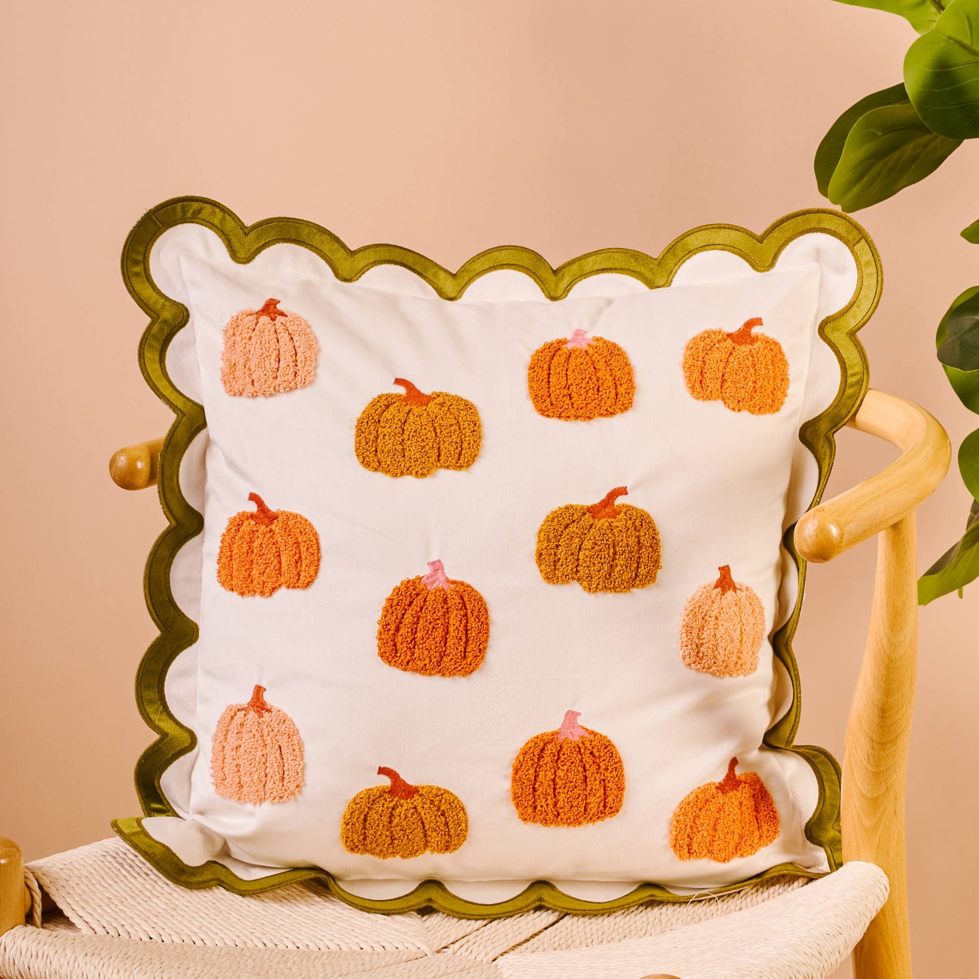 Scalloped Square Throw Pillow-Pumpkin Patch