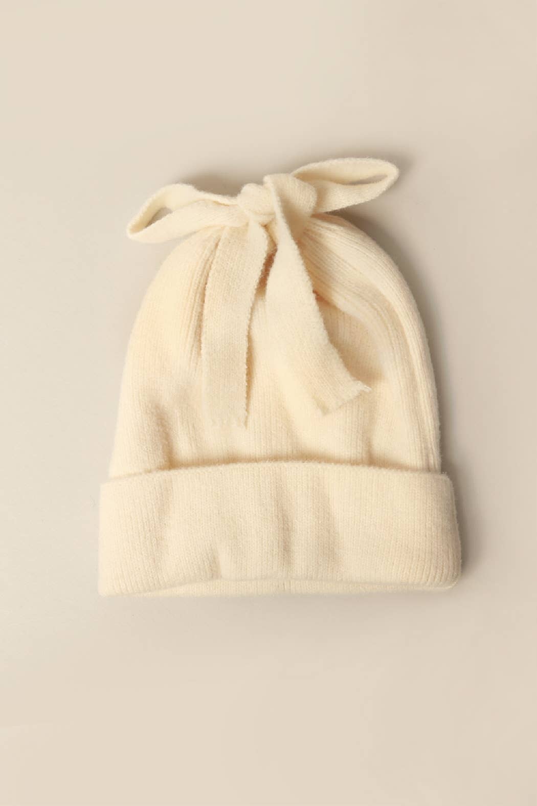 Women's Solid Knit Beanie Hat with Ribbon